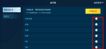 5、游戏加载后,在右上角开启“金手指功能”;