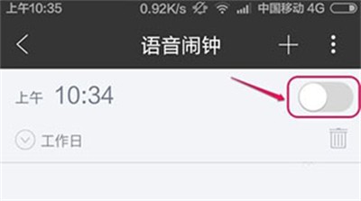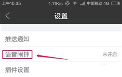 3、在设置界面,选择“语音闹钟”功能,当前为未开启状态。