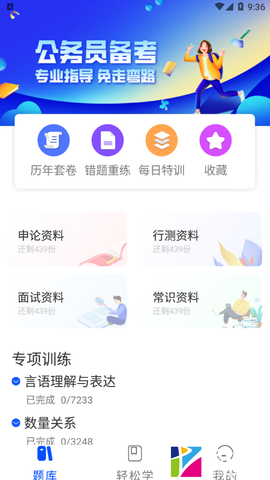 省考国考app拥有大量免费学习资料和丰富题库资源,一个以公务员考试辅导为主的在线学习平台。有各种省考、国考题库,让大家通过这个平台更好的学习,海量优质学习内容得到有效提升。
