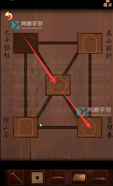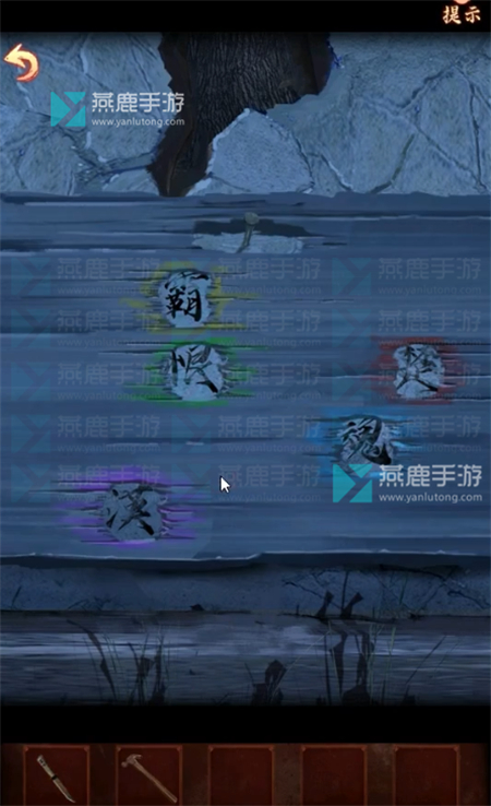 11、点击门锁,将其从左到右改为【楚、霸、魂、恨、漢】。
