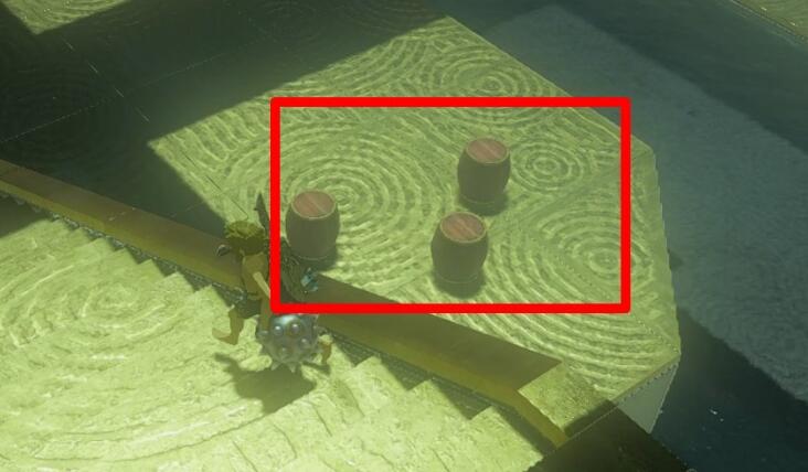 1、进入神庙之后在高台之上就能够找到一些炸药桶。