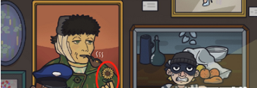 3、点击梵高画作上面的玻璃门就会出现一个角色,然后梵高就会开始想象,再将其想象的画面给那个角色她会将烟斗给我们,把烟斗给梵高就能获得向日葵。