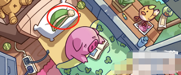 4、长按小猪的脸他就会起床,我们就能获得帽子,然后点击桌子上的纸条获得保险箱的密码。