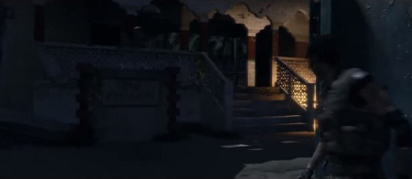 4、之后来到此处,将楼上的敌人解决后再从楼上通过。
