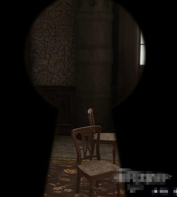 1、根据在保险箱旁捡到的纸上的提示,需要分别到四个房间通过钥匙孔观察房间内的情况寻找有关密码的线索。