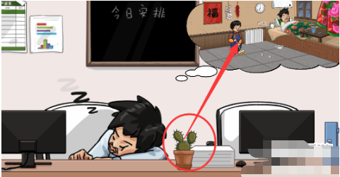 3、之后拿起桌子上的仙人掌将梦境戳破就可以了。