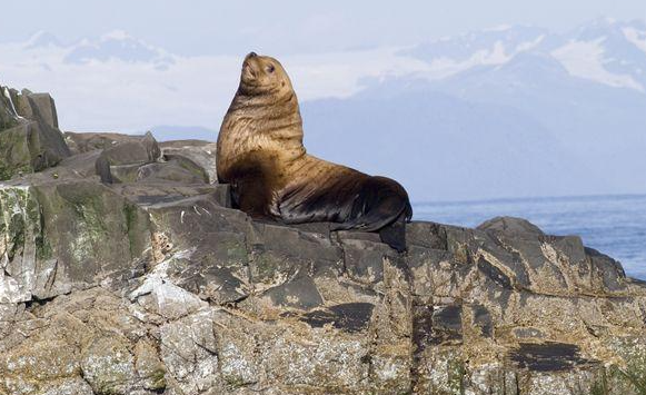 北海狮别名海驴、斯氏海狮。为海狮科最大的一种。面部短宽,吻部钝,眼和外耳壳相对较小,触须很长多集群活动,有时在陆岸可组成上千头的大群,它们主要聚集在饵料丰富的地区。食物主要为底栖鱼类和头足类。