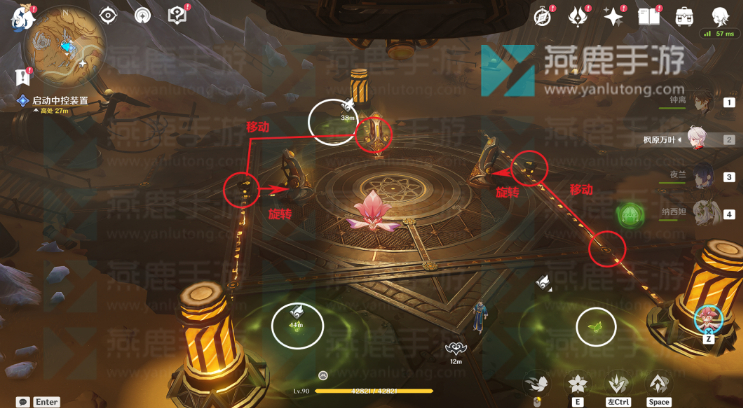 15、跟随指引返回,旋转和移动装置(如图所示),激活三个方碑即可。