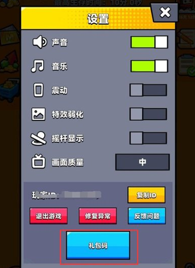 1、我们首先打开游戏中的设置,点击“礼包码”进入。