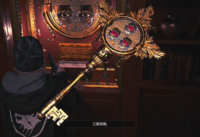 35、到大厅上楼后调整所有的画即可开启机关,获得三眼钥匙。