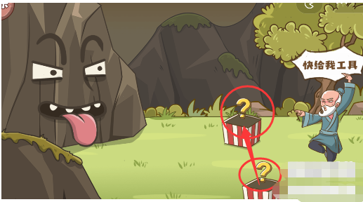 4、最后我们将这个最大的盲盒给愚公,他将获得最好的器械,然后就可以移山了