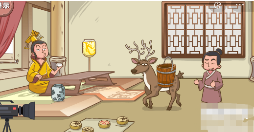 2、然后我们看到右下角有一个木桶,我们将其拖动到鹿身上。