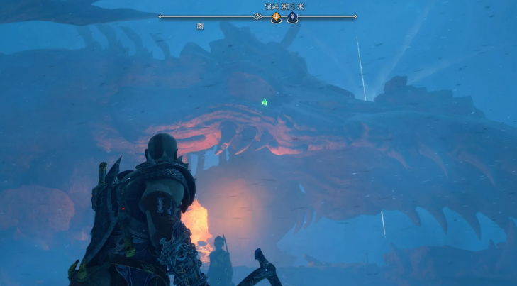 也是主线流程中,在下图所示的位置上岸就可以看到奥丁雕像旁的建筑上有第二只渡鸦。