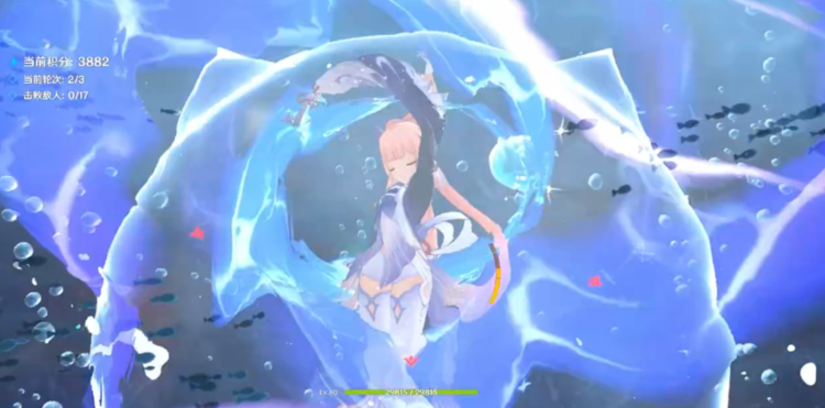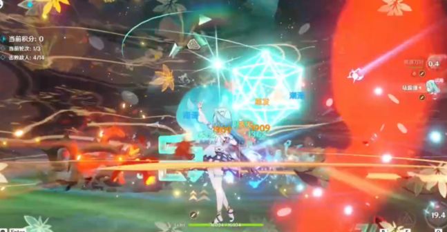 4、开启挑战,绫人Q,坎蒂丝Q接E,绫人EAAA。如此循环。