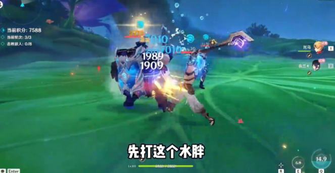 4、开启挑战,向左看,万叶长E下落攻击草萨满×2,。