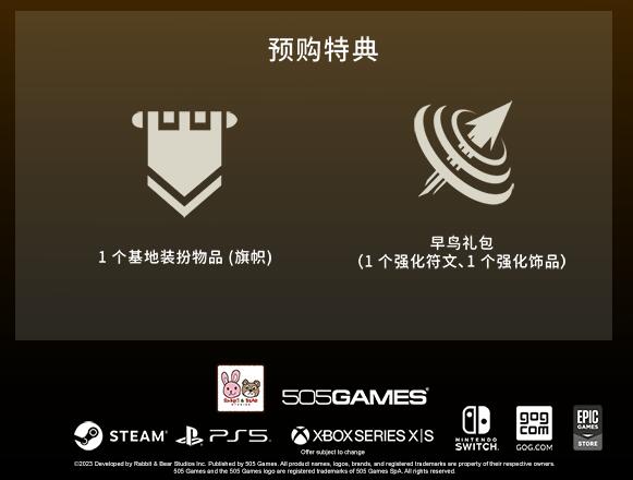 3. 现在预购可获得早鸟礼包(1个强化符文、1个强化饰品)及1个基地装扮物品。