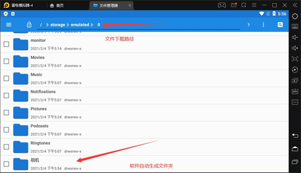 通过文件管理器找到路径:storage>emulated>0,找到相册文件夹,该文件夹是软件自动生成的。