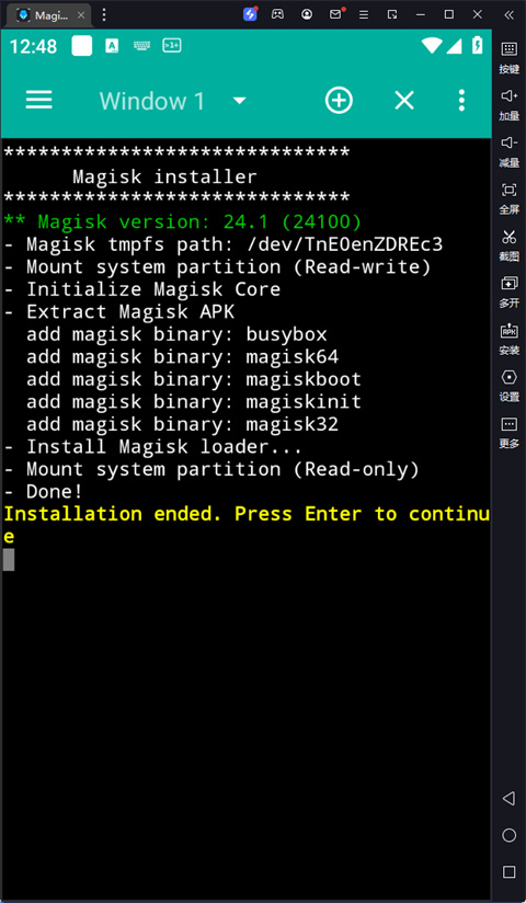 4、打开面具控制台Magisk Terminal,接下来需要几步输入命令行的操作。