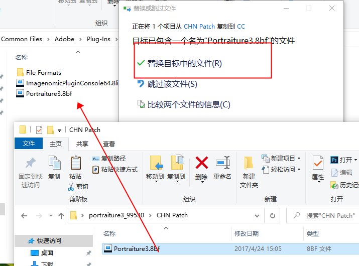 4. 安装完成后,将patch文件夹中的Portraiture3.8bf复制到指定目录替换原有文件。
