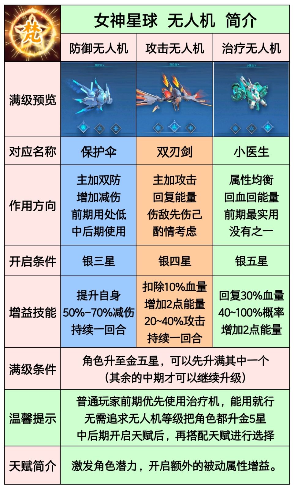 1、治疗无人机:每位女神回复30%血量,可能回2点能量。