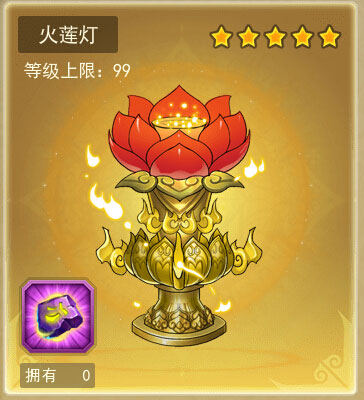 火莲灯为四娃专属法宝,法宝等级达20级可提升四娃属性20%。增强属性为攻击、暴击和命中。