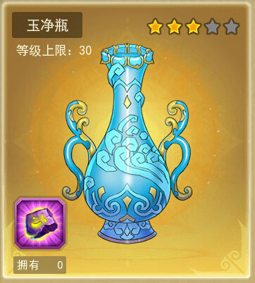 玉净瓶为五娃专属法宝,法宝等级达20级可提升五娃属性20%。增强属性为防御、生命和生命恢复。