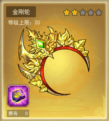 金刚轮为小金刚专属法宝,法宝等级达20级可提升小金刚属性20%。增强属性为生命恢复、攻击和防御。