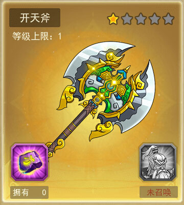 开天斧为山神使者专属法宝,法宝等级达20级可提升山神使者属性20%。增强属性为命中、攻击和暴击伤害。