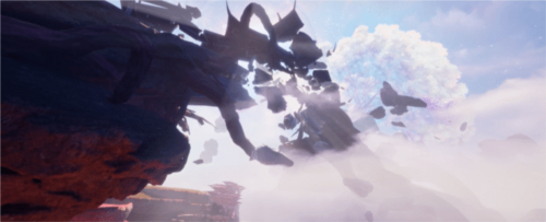 到达缝隙的另一边后,眼前豁然开朗,是一个奇异世界,破碎的建筑、纷飞的乱石……似乎有点眼熟?经过一番适应,我们还是能够认出了九黎的身影,只是熟悉的风景不再,而是发生了翻天覆地的变化。
