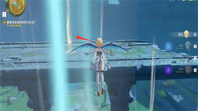 2、随后前往下方标记处,借助风场抵达右侧区域,解锁附近的七天神像后,开始搜寻光点。