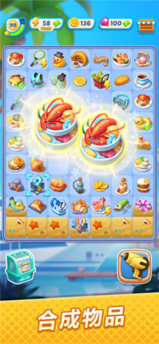 合成后出现的奖励泡泡可等待CD结束自动兑换金币,也可手动刺破。钻石充裕时(不超过20颗)可考虑购买高级物品加速进程。