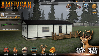 猎鹿人神枪手是一款动作射击类狩猎手游,采用先进的3D引擎打造,呈现出细腻真实的画面质感。您将化身为一名热爱户外探险的猎人,在美国广袤的野外世界中购买土地、建立营地,并邀请好友一同探索未知荒野,享受宁静又充满挑战的自然生活。虽然核心玩法围绕射击展开,但整体更像是一款融合生存与探险元素的开放世界游戏。游戏中栖息着多种野生动物,它们拥有高度拟真的行为模式,等待您持枪出击,展开一场场紧张刺激的狩猎行动。