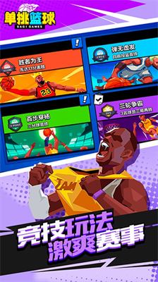 不同于传统篮球游戏的复杂操作,《单挑篮球》通过简化虚拟按键布局,实现精准操控,让您用最直观的方式完成突破、投篮、盖帽等动作,真正实现“指尖篮球”的爽快打击感。