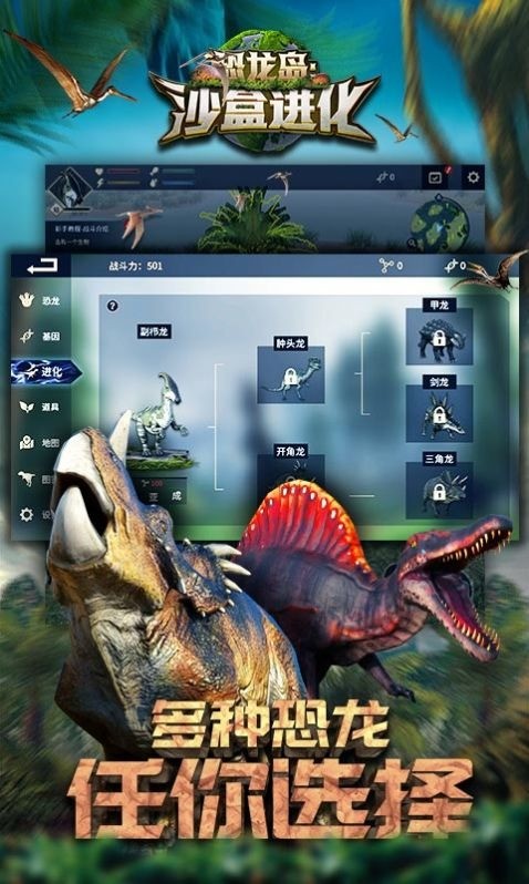 游戏采用高品质3D建模技术,场景细节丰富,音效逼真震撼,让您仿佛穿越至远古时代。无论是草食性的三角龙,还是凶残的霸王龙,每种恐龙都拥有独特的AI行为模式和战斗机制,等待您去研究与征服。